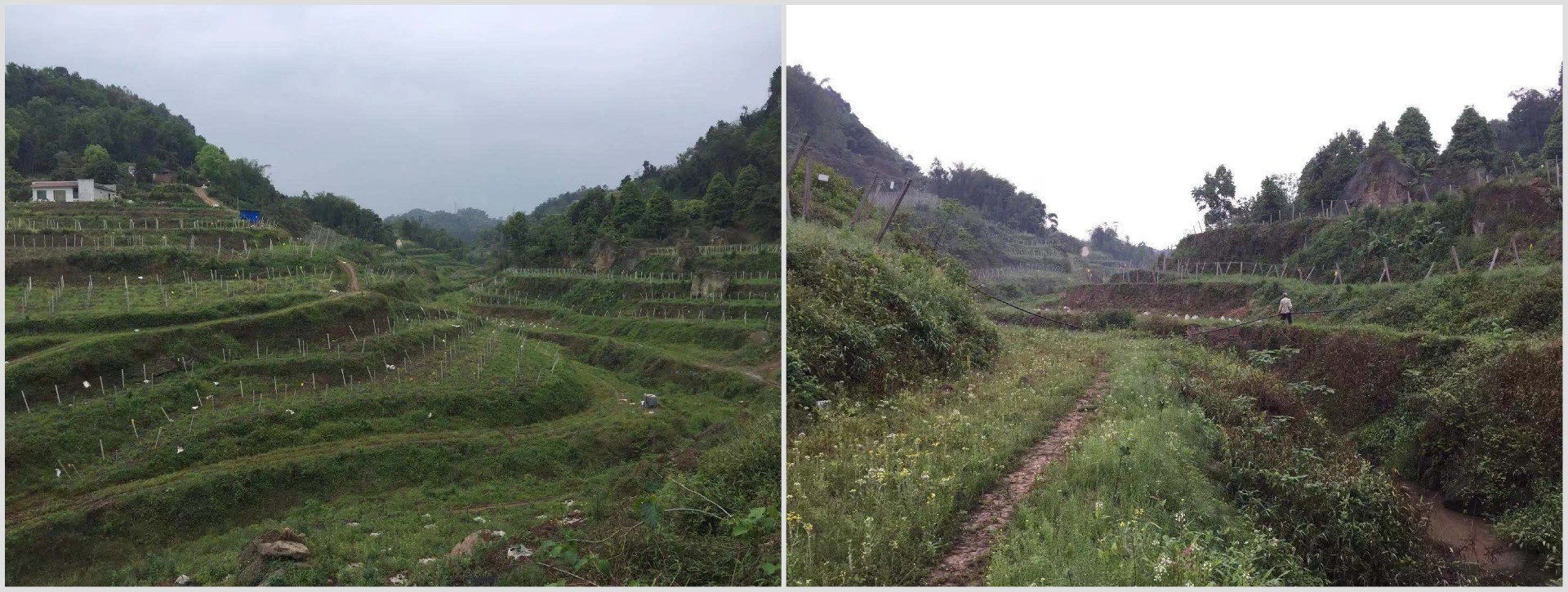 該項目地極為分散成長方形且分割于一條崖溝兩側,兩側種植面積最高點位置基本一樣垂直高度。此地形為行業內難度最大的典型地之一,U型地、狹長地。取水水源來源于當地政府鋪設的地埋農業灌溉管道。此地形難點為計算壓力,并做好排氣調壓及合理根據地形來劃分輪灌區域。在經過現場勘測及多次反復論證的設計后此項目最終完美解決了所有問題,出水均勻率也相較的達到比較高的水平。但在調試過程中因受困于項目地沒有三相電的問題調壓后末端有出水不正常的狀況,后根據項目診斷方案將原有的一臺水泵更換為兩臺并聯后全園灌溉施肥達到完美。